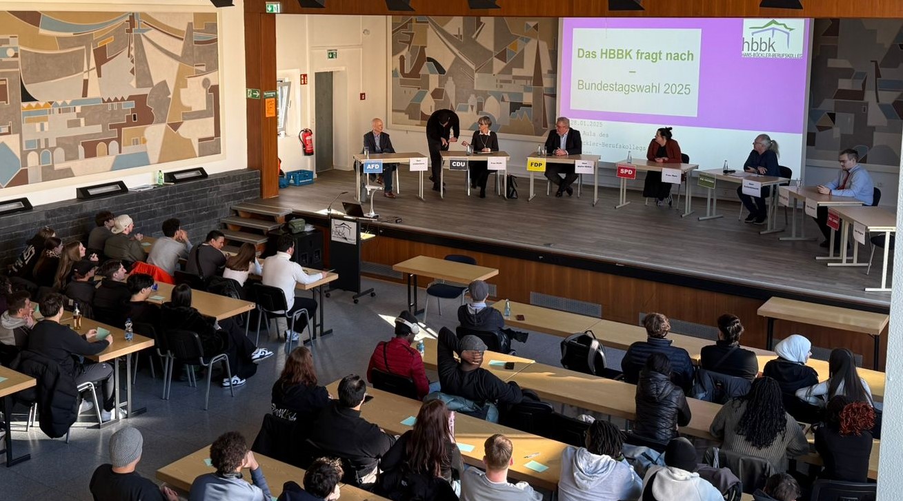 Am 23. Februar 2025 steht die Bundestagswahl an. Das Hans-Böckler-Berufskolleg stimmte sich mit seiner zur Tradition gewordenen Politikveranstaltung „Das HBBK fragt nach“ darauf ein.
